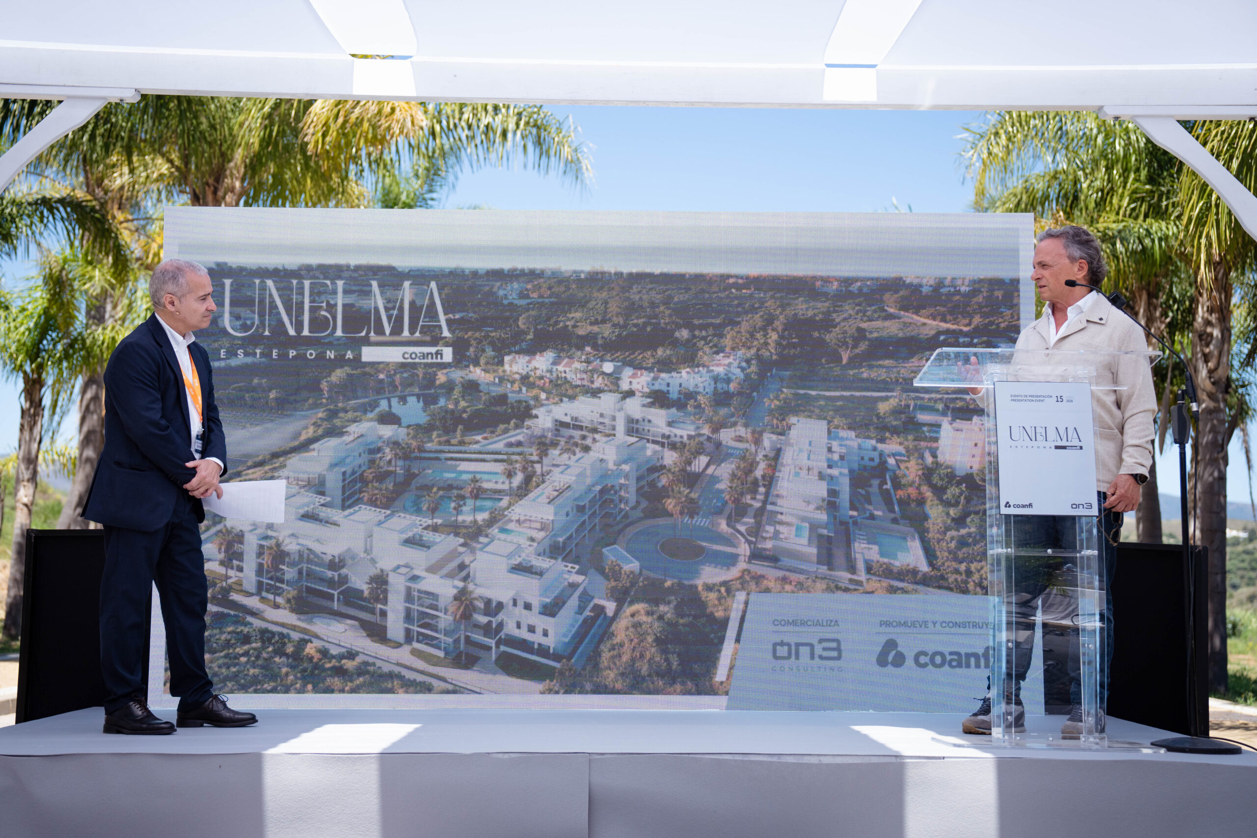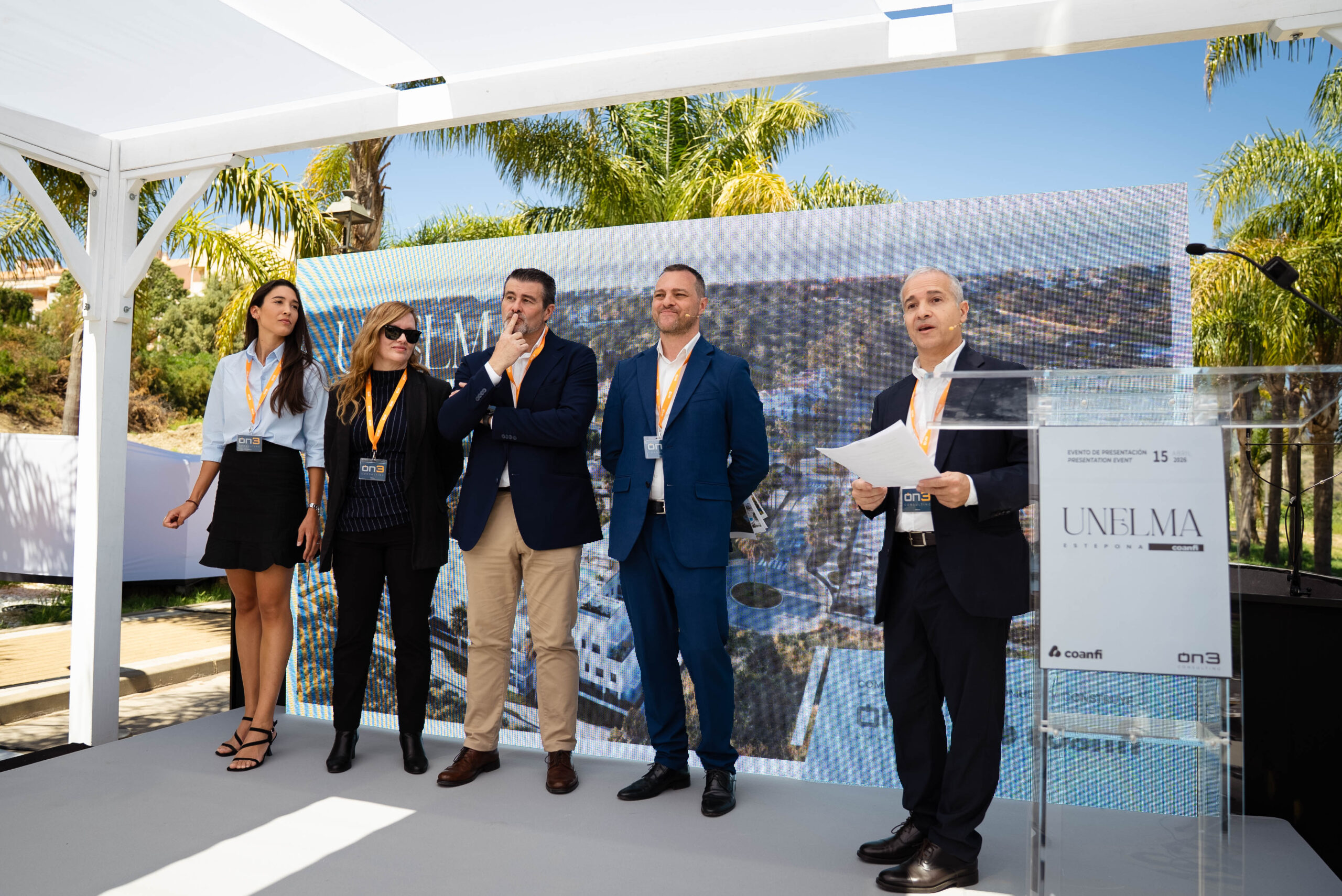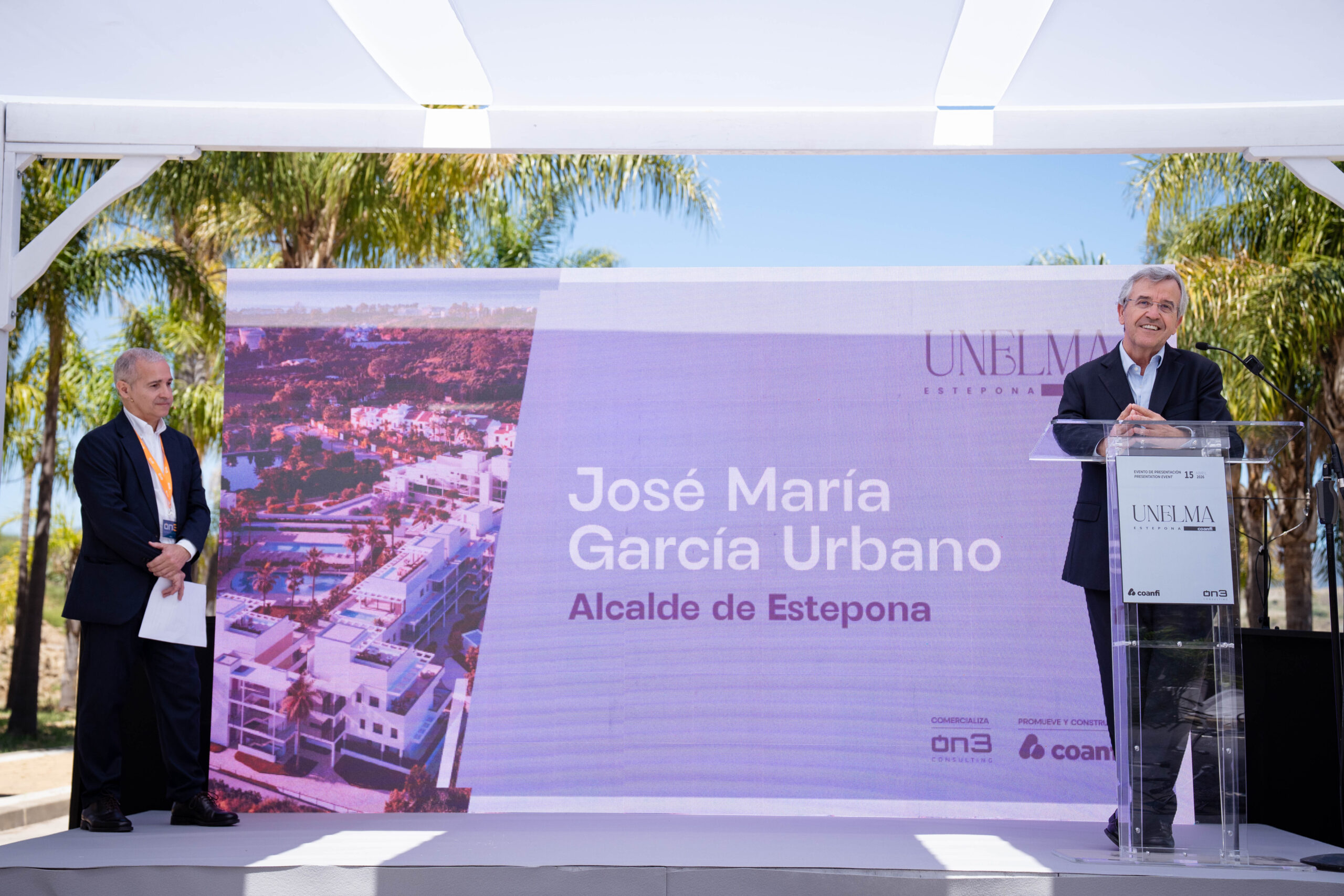 Contamos con las intervenciones del alcalde de Estepona, José María García Urbano, junto a nuestro director general del área Inmobiliaria, Francisco José Díaz, y al arquitecto de Unelma y director de Arata Arquitectura, Moisés García.